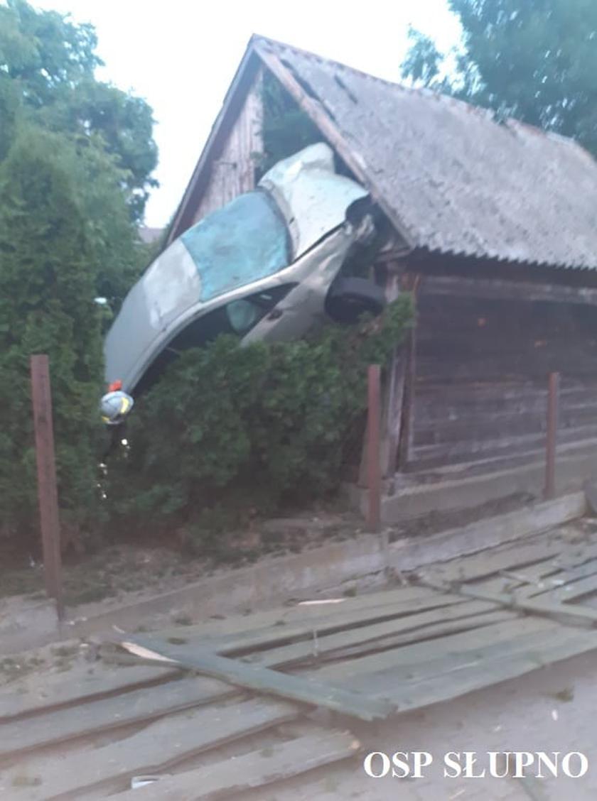 W Wykowie w czwartek miał miejsce niecodzienny wypadek . 18-latek, który kierował fiatem, wypad z drogi, po drodze staranował płot posesji, uderzył w ścianę budynku gospodarczego. Skończyło się tym, że znalazł się na budynku pionowo.