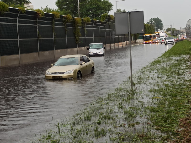 Na trasie S8 korek ma już 12 km. Powodem jest zalanie części trasy. Ciężarówki i samochody terenowe z wysokim podwoziem dają radę. Inne niestety utknęły w wodzie. Kilka samochodów utknęło w wodzie, która zalała trasę S8. Korek ma już 12 kilometrów w obie strony. W miarę możliwości zaleca się omijanie trasy S8.