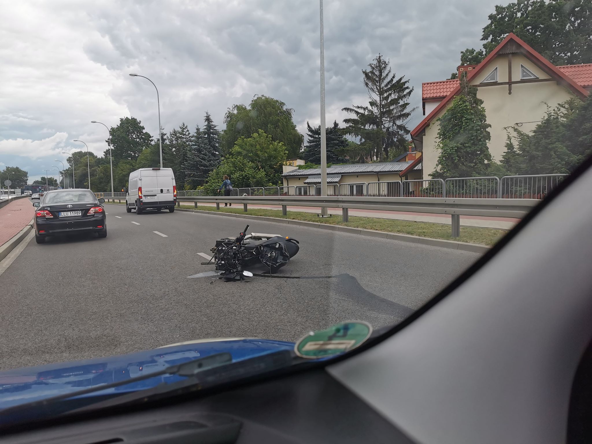 Wszystko miało miejsce przy wyjeździe z Pruszkowa. Motocykl został dość znacząco uszkodzony, co widać na zdjęciach. Na szczęście motocyklista nie doznał poważniejszych obrażeń i miał ogromne szczęście, bo dosłownie 4 samochody za nim jechała karetka, a ratownicy mogli mu udzielić błyskawicznej pomocy.