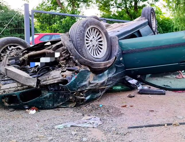 Rajd pijanego mężczyzny skończył się staranowaniem metalowej siatki wokół posesji, ścięciem drzewa i uderzeniem słup, i dachowaniem. Wszystko zostało nagrane przez monitoring.