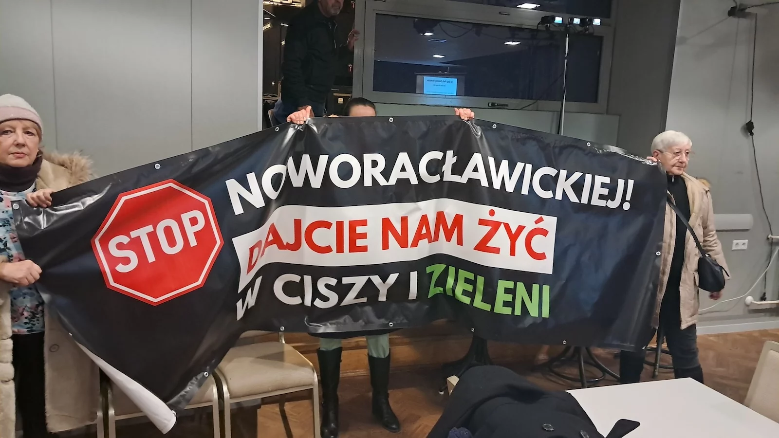 Organizatorki protestów i współautorki petycji złożonej do prezydenta Warszawy w grudniu 2024 roku, w lutym znów pojawiły się z wielkim transparentem podczas sesji rady dzielnicy Mokotów. - Przeciwko Noworacławickiej protestujemy już 25 lat, odkąd tylko pojawiły się pogłoski o powrocie do tego pomysłu - mówi nam Małgorzata Wojda. - Mimo tego, w 2006 roku powstał plan uwzględniający budowę Noworacławickiej. W 2018 roku znów zaczęło być głośno o budowie. Terminy się przesuwają, ale prace wciąż trwają...