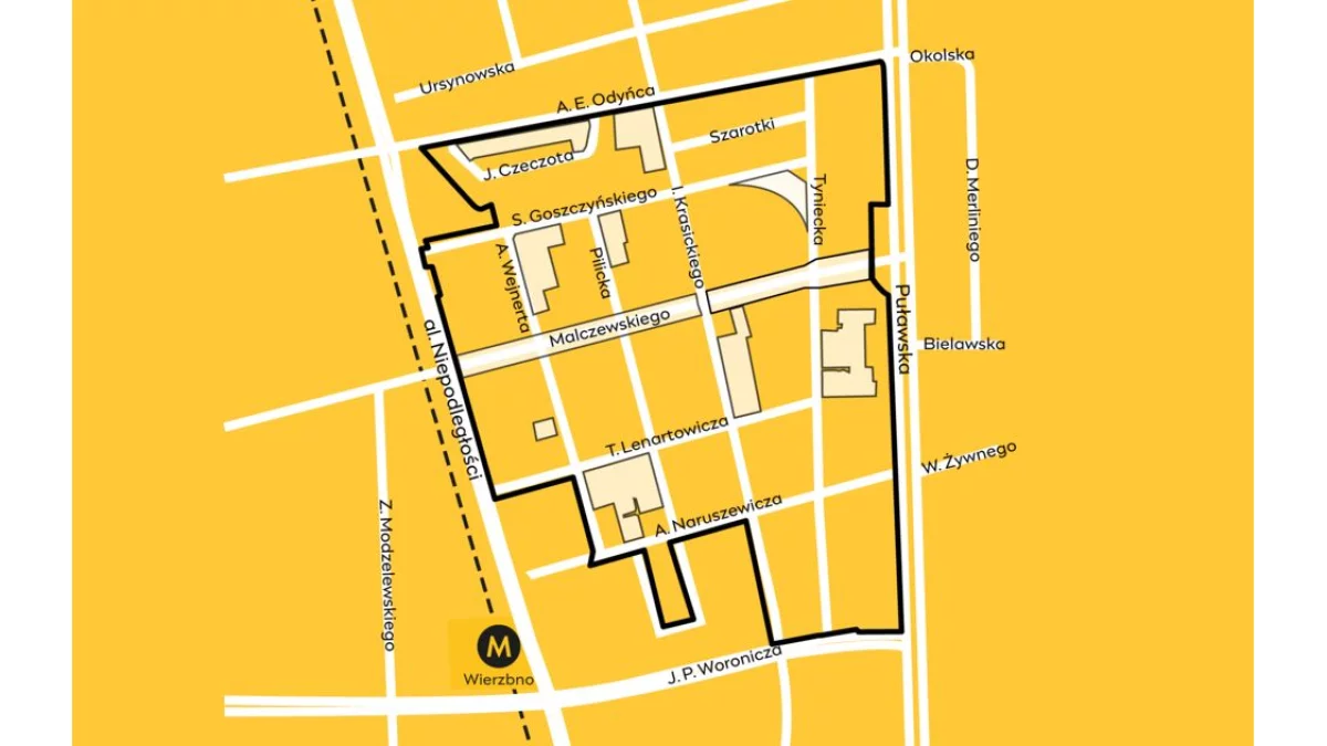 Teren objęty nowym projektem miejscowego planu zagospodarowania przestrzennego tej części Mokotowa, czyli okolic ul. Krasickiego i ul. Malczewskiego ma ok. 38 ha i znajduje się na Wierzbnie. Jest ograniczony ulicą Odyńca od północy, Puławską od wschodu, ulicami: Woronicza, Krasickiego, Naruszewicza, Pilicką, Wejnerta i Lenartowicza od południa oraz al. Niepodległości od zachodu.