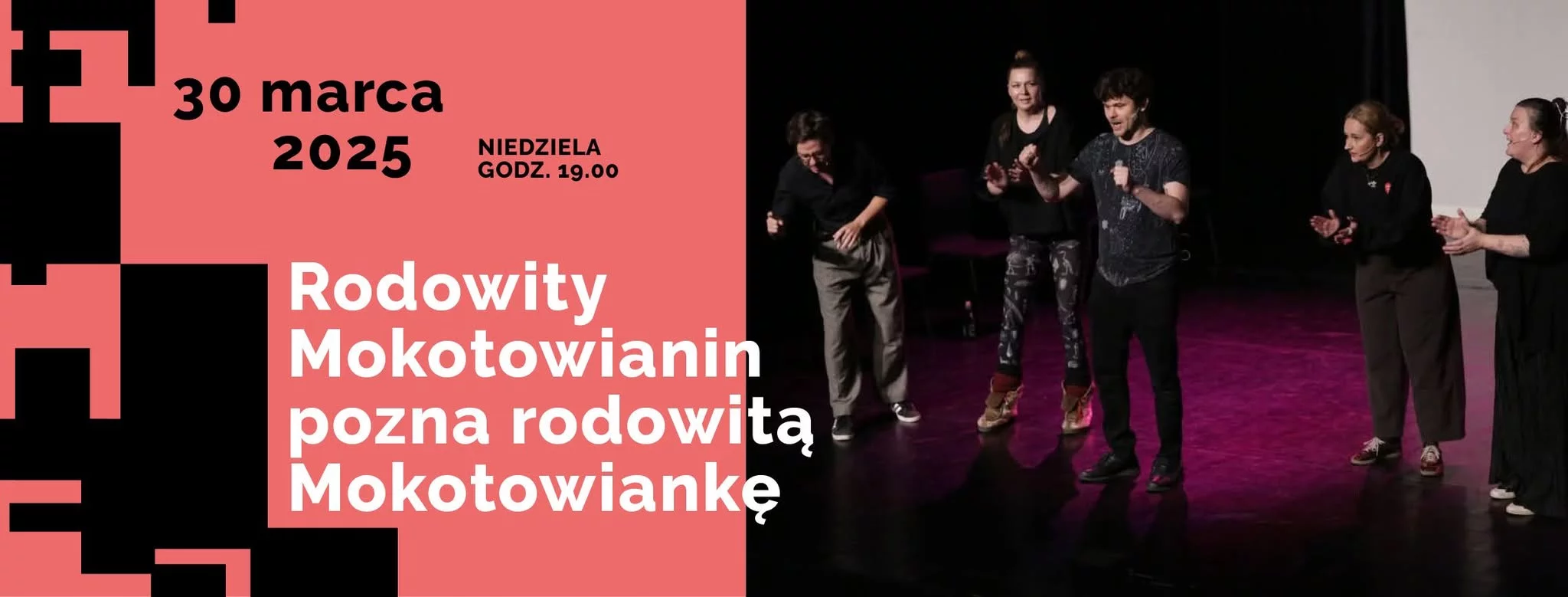 Także w DK Kadr spektakl improwizowany, inspirowany tematami z lokalnych forów, czyli "Rodowity mokotowianin pozna rodowitą mokotowiankę" Kolektywu Śmiesznie. - Omówimy kluczowe awantury i lokalne absurdy, a one staną się inspiracją do improwizowanych scen. To wydarzenie komediowe łączące spektakl z interakcją z publicznością – spoglądamy na lokalne problemy z przymrużeniem oka i przypominamy najbardziej spektakularne dramy. Ale też dla równowagi – chwile, w których mokotowski Facebook był krainą życzliwości i miłości. Bilet 35 zł, niedziela 30 marca, godzina 19.