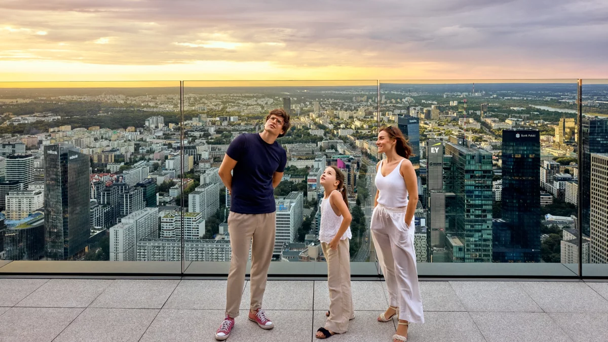 Kulminacja wizyty. Na wysokości 230 metrów znajduje się taras widokowy z pełną panoramą 360 stopni. To najwyżej położone miejsce tego typu w całej Unii Europejskiej. Jak zapowiada inwestor – to tutaj „Warszawa spotyka niebo”.