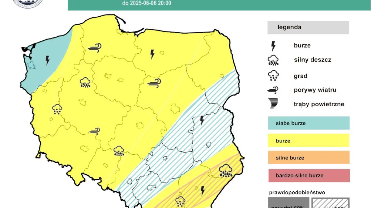 Istotne będą jednak porywy wiatru osiągające 70 km/h, a lokalnie około 85 km/h. Miejscami prognozowane są również opady gradu, ale mniejszego niż na południowym wschodzie, do 2-3 cm.