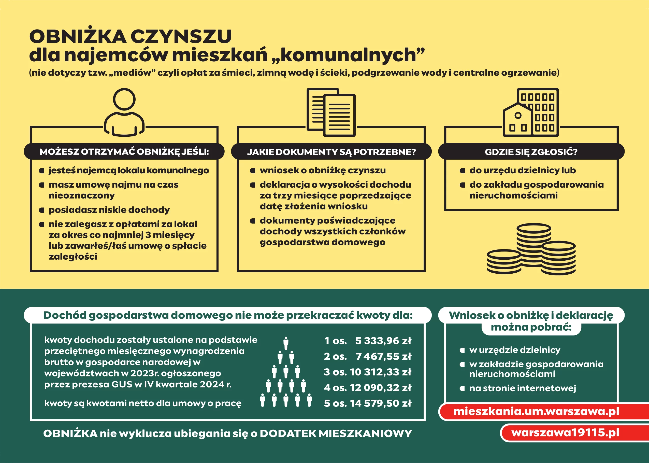 - Obniżka czynszu dla najemców mieszkań komunalnych nie obejmuje opłat za śmieci, zimną wodę i ścieki, podgrzewanie wody ani centralne ogrzewanie - zapowiada miasto. Jakie dokumenty są potrzebne do obniżki czynszu?
