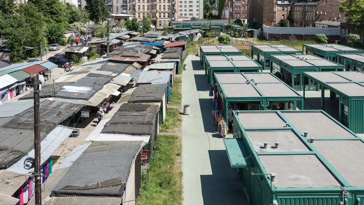 Policjanci zbierali relacje świadków i zabezpieczyli teren pogorzeliska, gdzie strażacy jeszcze do późnego wieczora dogaszali wypalone resztki straganów. Co było przyczyną pożaru, gdzie najpierw pojawił się ogień, dlaczego rozprzestrzenił się tak szybko, jaka jest skala strat i czy ktoś pożar spowodował - na wszystkie te pytania ma odpowiedzieć policyjne dochodzenie. Najważniejsze, że na miejscu nikt nie ucierpiał. Na zdjęciu poniżej (Fot. Adrian Grycuk/CC BY-SA 3.0 pl), widać spalone obecnie budy kryte papą - po lewej stronie nowych pawilonów.