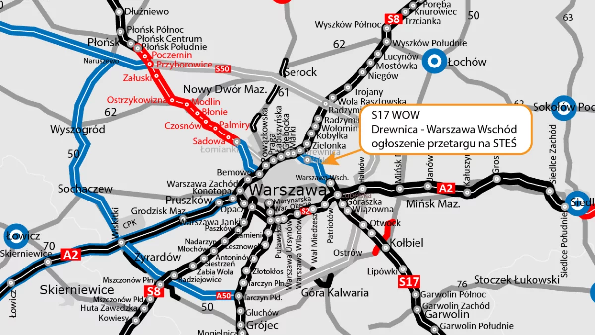 Drogowcy z GDDKiA uważają, że kluczowym, brakującym elementem jest ok. 14-kilometrowy odcinek od węzła Drewnica na skrzyżowaniu z S8 do węzła Warszawa Wschód, co uniemożliwi docelowe rozłożenie ruchu na obwodnicy stolicy. Dlatego ogłosili przetarg na wykonanie Studium techniczno-ekonomiczno-środowiskowego wraz z uzyskaniem decyzji środowiskowej dla Wschodniej Obwodnicy Warszawy (WOW) w ciągu drogi ekspresowej S17. To ostatni, ok. 14-kilometrowy odcinek, który umożliwi domknięcie Warszawskiego Węzła Drogowego.