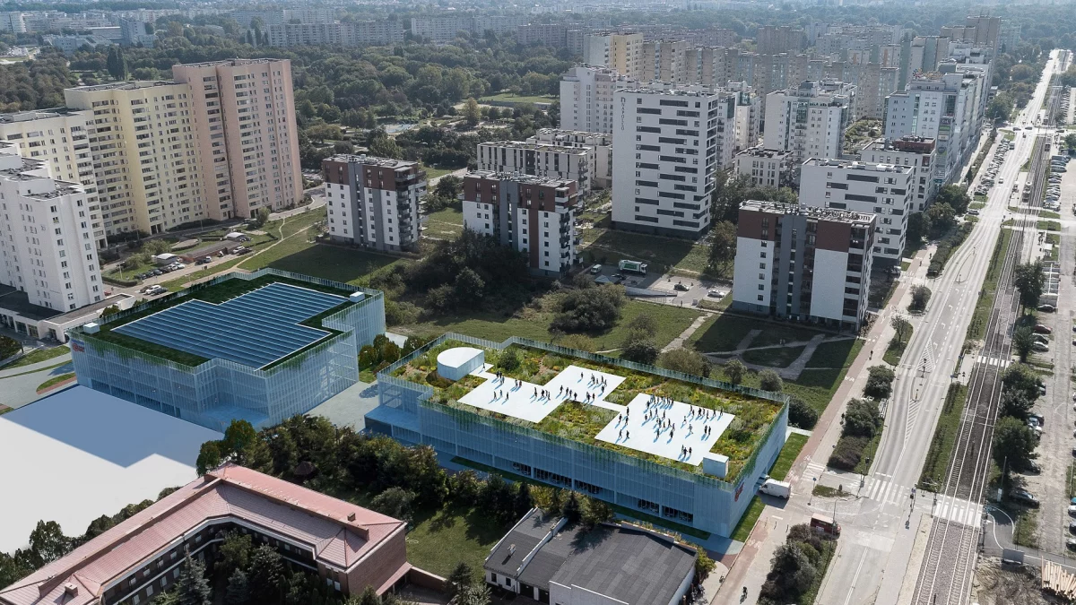 Pierwotna koncepcja zakładała bowiem powstanie dwóch budynków, związanych podziemnym łącznikiem. Na części zadaszenia obu budynków planowane było zasadzenie roślin. Na dachu jednego z nich miały być zamontowane panele fotowoltaiczne, dach drugiego zaplanowano jako strefę odpoczynku dla mieszkańców. W pobliżu parkingu zaplanowany był nawet lokalny bazarek, również część nieruchomości miałą być zagospodarowania pod handel.