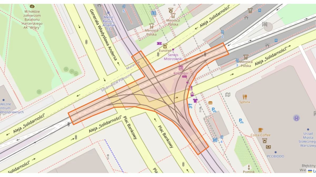 Kierowcy jadący z ul. Andersa nie przetną al. „Solidarności”; obowiązkowy skręt w prawo w stronę al. Jana Pawła II. Z al. „Solidarności” nie będzie możliwości skrętu w lewo na plac Bankowy. Objazd poprowadzony zostanie ul. Grzybowską i al. Jana Pawła II.