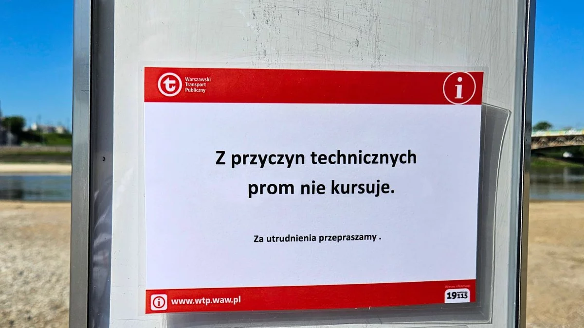 Z uwagi na niski stan wody kursowanie promów WILGA, SŁONKA, PLISZKA zostaje zawieszone do odwołania - zakomunikował dziś (we wtorek 12 sierpnia) Warszawski Transport Publiczny.